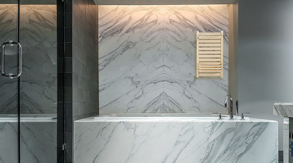 现在的卫浴暖气片不想已经的老款卫浴暖气片,现在的卫浴暖气片美观度做的很好,造型精巧、而且表面光滑细腻,整体给人简洁大气的感觉,安装在卫生间里犹如一件精美的艺术品,完美的诠释家居生活的舒适与典雅;此外,在安装时,有专用托卡和精致配件托悬暖气片挂在墙壁上,不会占用过多的空间,使卫浴间显得更加整洁,井然有序。