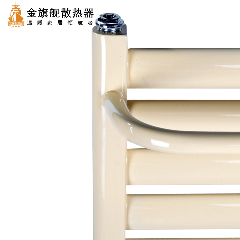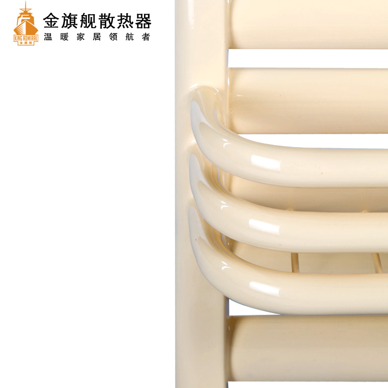 金旗舰卫浴暖气片简约、时尚、美观、大方,既可以取暖,又可以作为毛巾架使用,是卫生间必备产品;其容水量大,水流量大;全辐射散热,比对流暖气片对水温要求低,反应灵敏,一旦启动,立即加热您的皮肤和空气;停暖后,仍能持续供暖,直至水温降至室温水平。