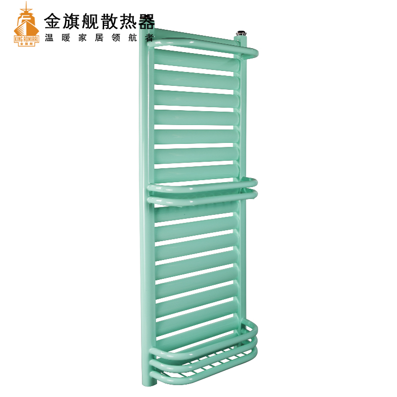 金旗舰卫浴暖气片简约、时尚、美观、大方,既可以取暖,又可以作为毛巾架使用,是卫生间必备产品;其容水量大,水流量大;全辐射散热,比对流暖气片对水温要求低,反应灵敏,一旦启动,立即加热您的皮肤和空气;停暖后,仍能持续供暖,直至水温降至室温水平。
