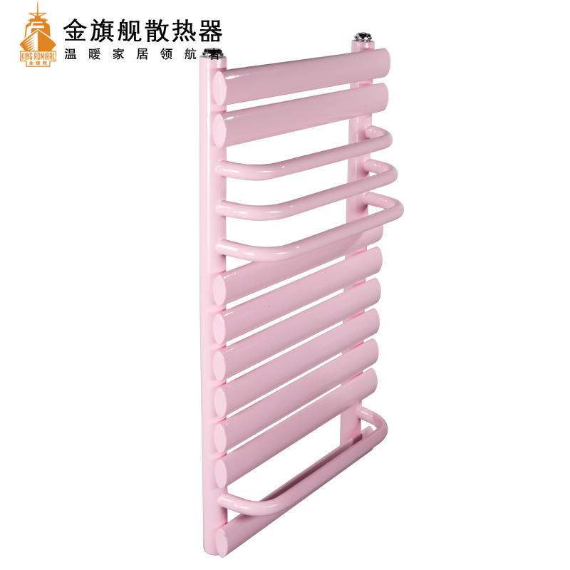 金旗舰卫浴暖气片简约、时尚、美观、大方,既可以取暖,又可以作为毛巾架使用,是卫生间必备产品;其容水量大,水流量大;全辐射散热,比对流暖气片对水温要求低,反应灵敏,一旦启动,立即加热您的皮肤和空气;停暖后,仍能持续供暖,直至水温降至室温水平。