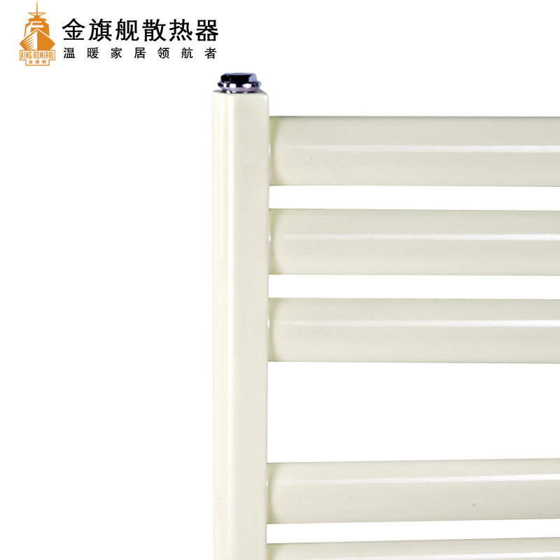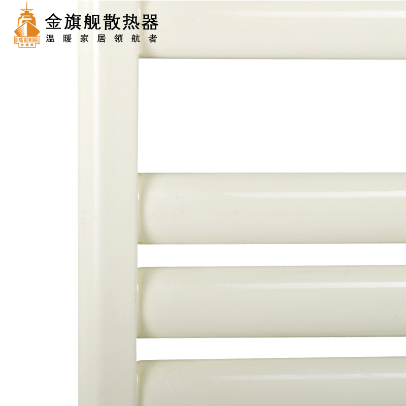 金旗舰卫浴暖气片简约、时尚、美观、大方,既可以取暖,又可以作为毛巾架使用,是卫生间必备产品;其容水量大,水流量大;全辐射散热,比对流暖气片对水温要求低,反应灵敏,一旦启动,立即加热您的皮肤和空气;停暖后,仍能持续供暖,直至水温降至室温水平。
