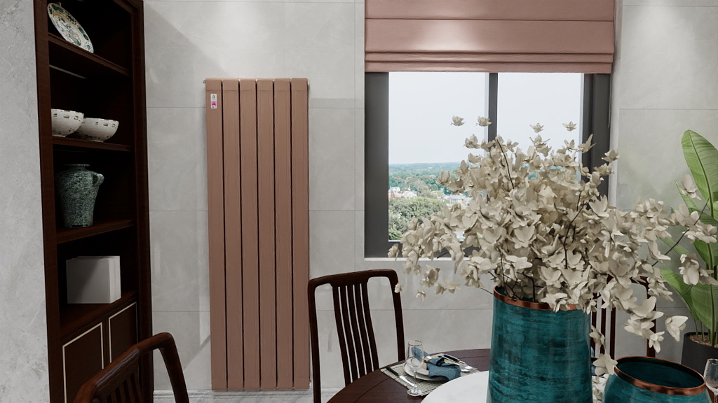 造型设计:设计不仅影响审美,其实还与热空气流动有关。图片中暖气片的肋片排列和间距会影响散热效果,宽大而密集的设计通常意味着更好的热传导。