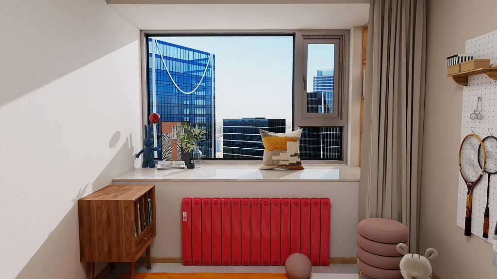 热水流经散热器,铝制翅片/钢制板体通过热辐射+对流释放热量;