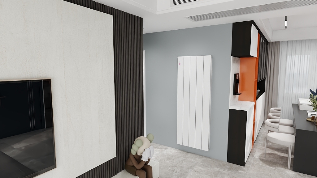 创意案例:在一家小型工作室中,设计师将壁挂式暖气系统与墙面艺术相结合,暖气片本身就是一件艺术品,为工作空间增添了一抹色彩。